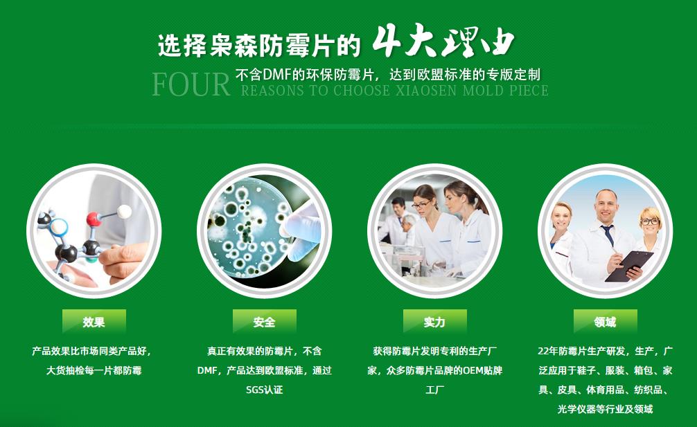 有效果的防(fáng)黴片,不含DMF,產(chǎn)品達到歐盟標準,通(tōng)過SGS認證